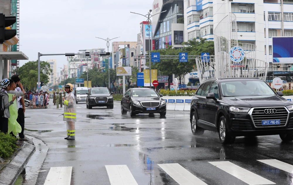 Một đoàn xe của lãnh đạo APEC đi ngang đường phố Đà Nẵng.
