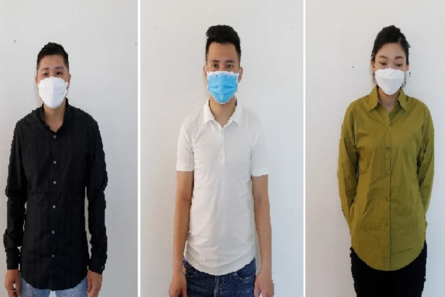 Các bị can Tuấn, Bính và Hồng tại cơ quan công an.