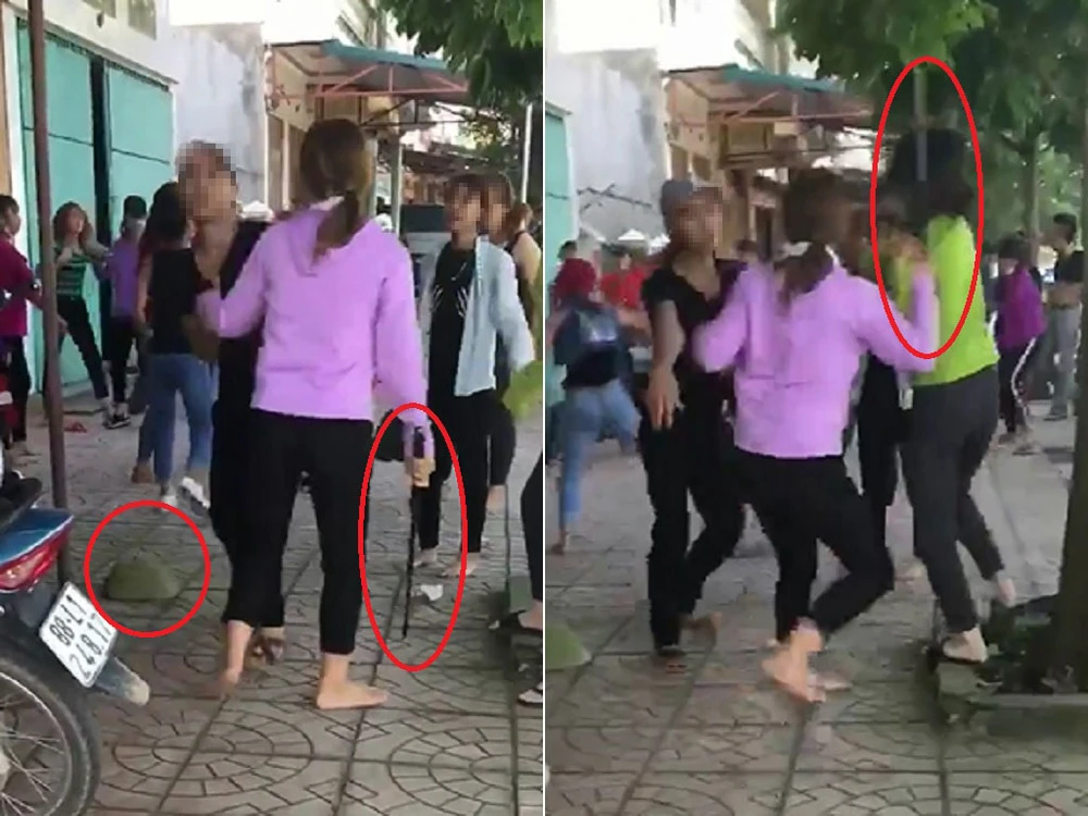 Nhóm thiếu nữ dùng mũ cối, gậy sắt đánh nhau túi bụi.