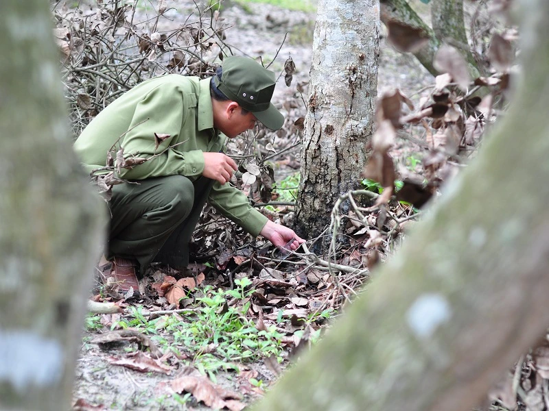 Theo ông Đặng Văn Hiện, Trưởng phân trường Trảng Táo qua kiểm tra phát hiện cây bị khoan và đổ chất độc vào thân cây đã dùng cành, lá khô tấp vào gốc để che giấu. "Những cây này bị đổ thuốc vào khoảng 10 ngày trước. Cách đây mấy hôm, chúng tôi đi tuần và thấy cây héo úa bất thường. Khi kiểm tra thân ở phần gốc thì phát hiện vụ việc", ông Hiện nói.