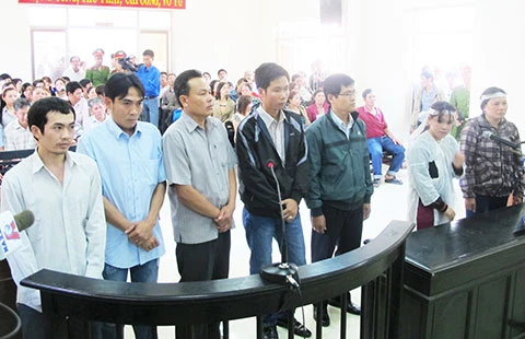 Có rất ít vụ dùng nhục hình bị phát hiện và xử lý. Trong ảnh: Năm bị cáo công an Phú Yên dùng nhục hình làm chết anh Ngô Thanh Kiều. Ảnh: TẤN LỘC