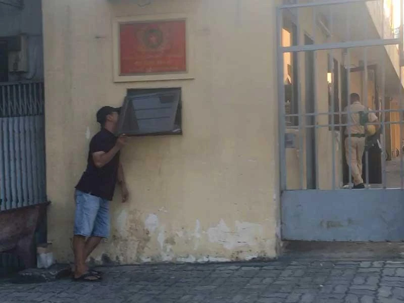 Ông Hùng trao đổi với người bên trong Đội CSGT An Lạc chiều 27-3, sau đó nhận một vật giống tiền từ một người đàn ông ở một kho sắt bên quận 8.