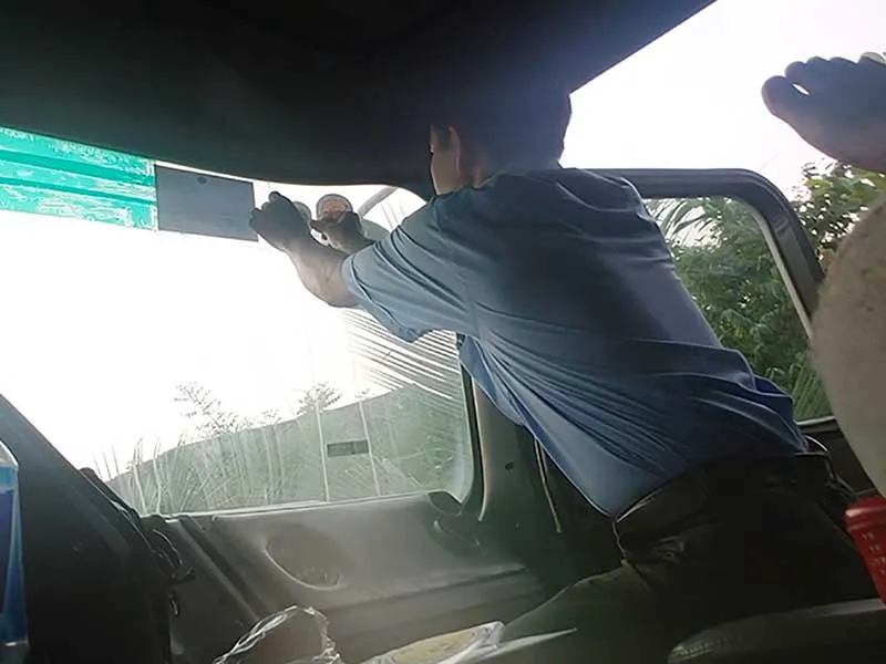 Tài xế L. phân trần: “Đầu kéo mất thắng nhưng sử dụng thắng của rơmoóc, lưu thông vẫn an toàn”. Sau khi nói “Thắng phải được một chút thì mới được”, K. yêu cầu tài xế nộp phí đăng kiểm. “Chạy vô thử đi, không lấy tiền đâu mà sợ, nếu mà nặng quá thì người ta gửi tiền phí lại à, không thu tiền phí đâu”. (Theo quy định, khi ô tô đã vào đăng kiểm là phải trả phí chứ không có chuyện trả lại).