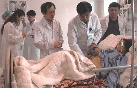 Bác sĩ BV Bạch Mai khám nạn nhân vụ lật cầu treo ở Lai Châu. Ảnh: TTXVN