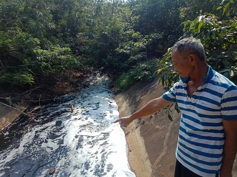 Người dân phản ánh khu vực suối Giao Kèo nước có màu đen và bốc mùi khó chịu. Ảnh: T.KHÁNH