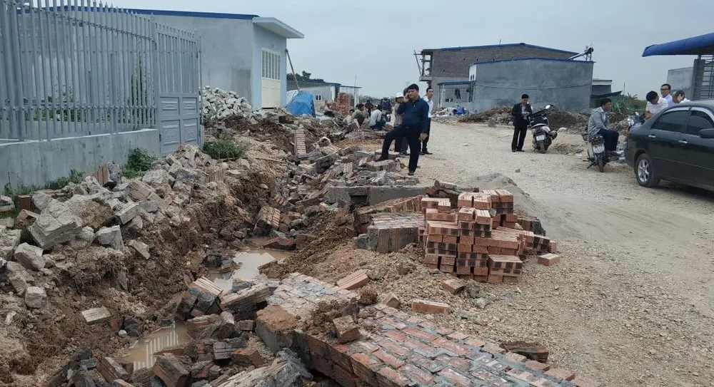 Một số công trình móng nhà, tường bao... bị lực lượng chức năng phá dỡ.