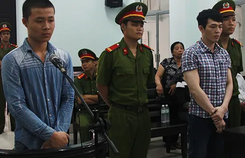 Bị cáo Lê Minh Phát (phải) và bị cáo Lê Tấn Khỏe đang nghe tòa tuyên án. Ảnh: TẤN LỘC