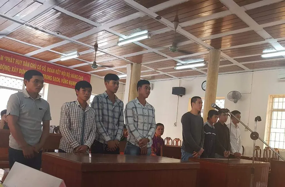 Tại phiên xử sơ thẩm của TAND huyện Thoại Sơn vào tháng 12-2017, tòa này đã tuyên các bị cáo phạm tội cưỡng đoạt tài sản (trước đó VKS tuy tố tội cướp tài sản), phạt Mạnh ba năm tù, bị cáo Hậu một năm tù treo, trả tự do ngay tại tòa cho bảy bị cáo còn lại do mức án tù bằng thời gian tạm giam.