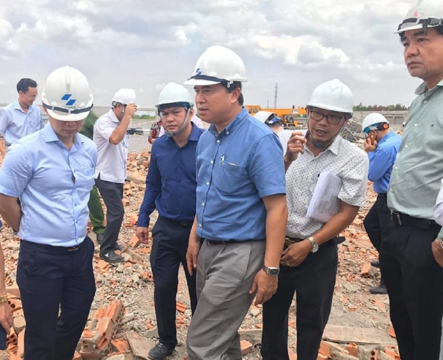 Thứ trưởng Bộ Xây dựng Lê Quang Hùng kiểm tra hiện trường.