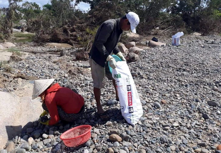 Người dân nhặt đá cuội tại xã Mỹ Sơn. Ảnh: Đ.K.