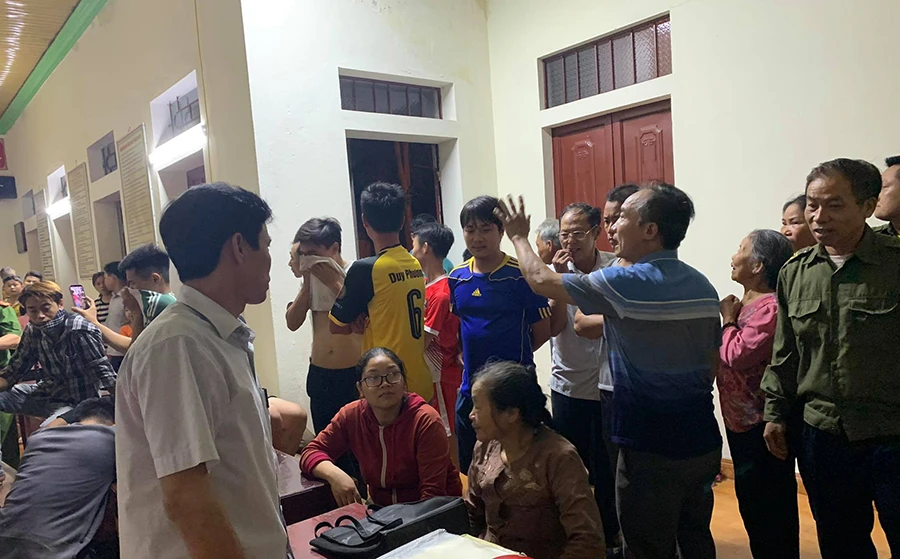 Người dân đưa nhóm người "trồng" giả về trụ sở. Ảnh: Bông Cúc Nhỏ
