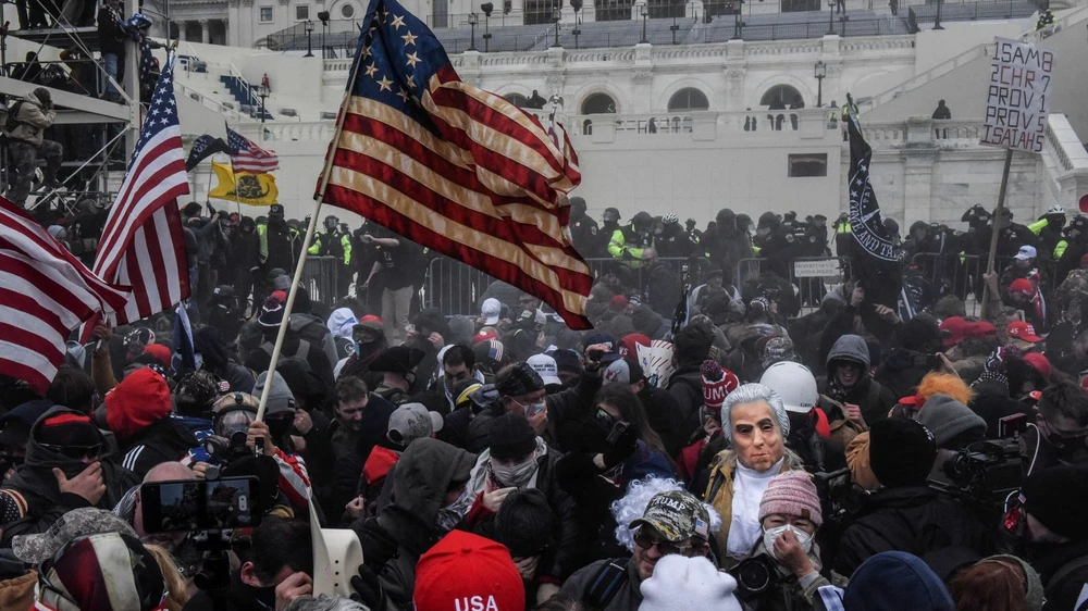 Hôm 6-1, những người biểu tình ủng hộ Tổng thống Trump tràn vào tòa nhà quốc hội Mỹ, đập vỡ cửa sổ và vẫy cờ Trump, cờ Mỹ và cờ Liên minh miền nam Mỹ.