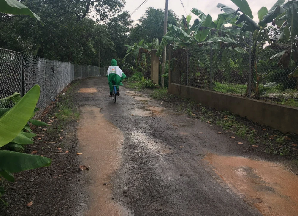 Đoạn đường Cầu Suối Cạn nhánh 3 đang thi công bị bỏ ngang khiến người dân đi lại hết sức khó khăn. Ảnh: VH