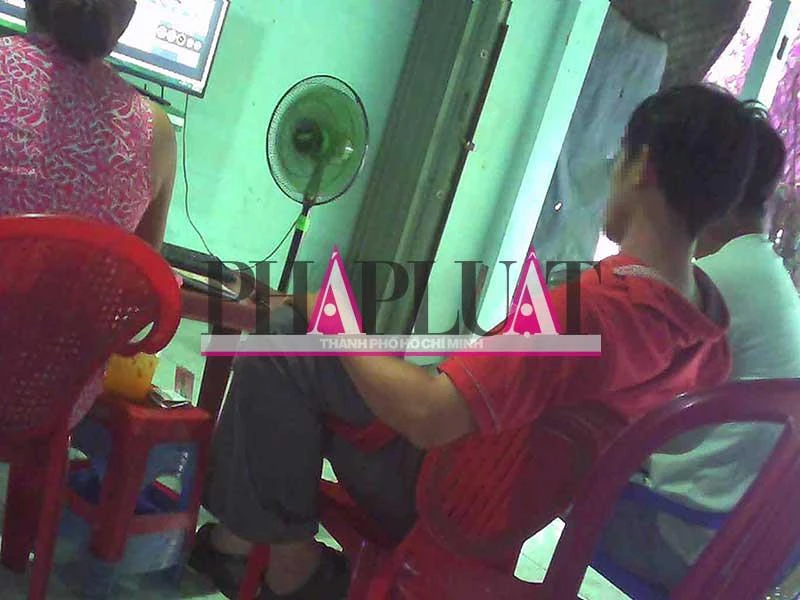 Trong khói thuốc lờ mờ, hơn 10 người, có cả phụ nữ dán mắt vào màn hình, thi thoảng có người vỗ đùi hoặc buông tiếng chửi thề vì thắng hoặc thua độ.