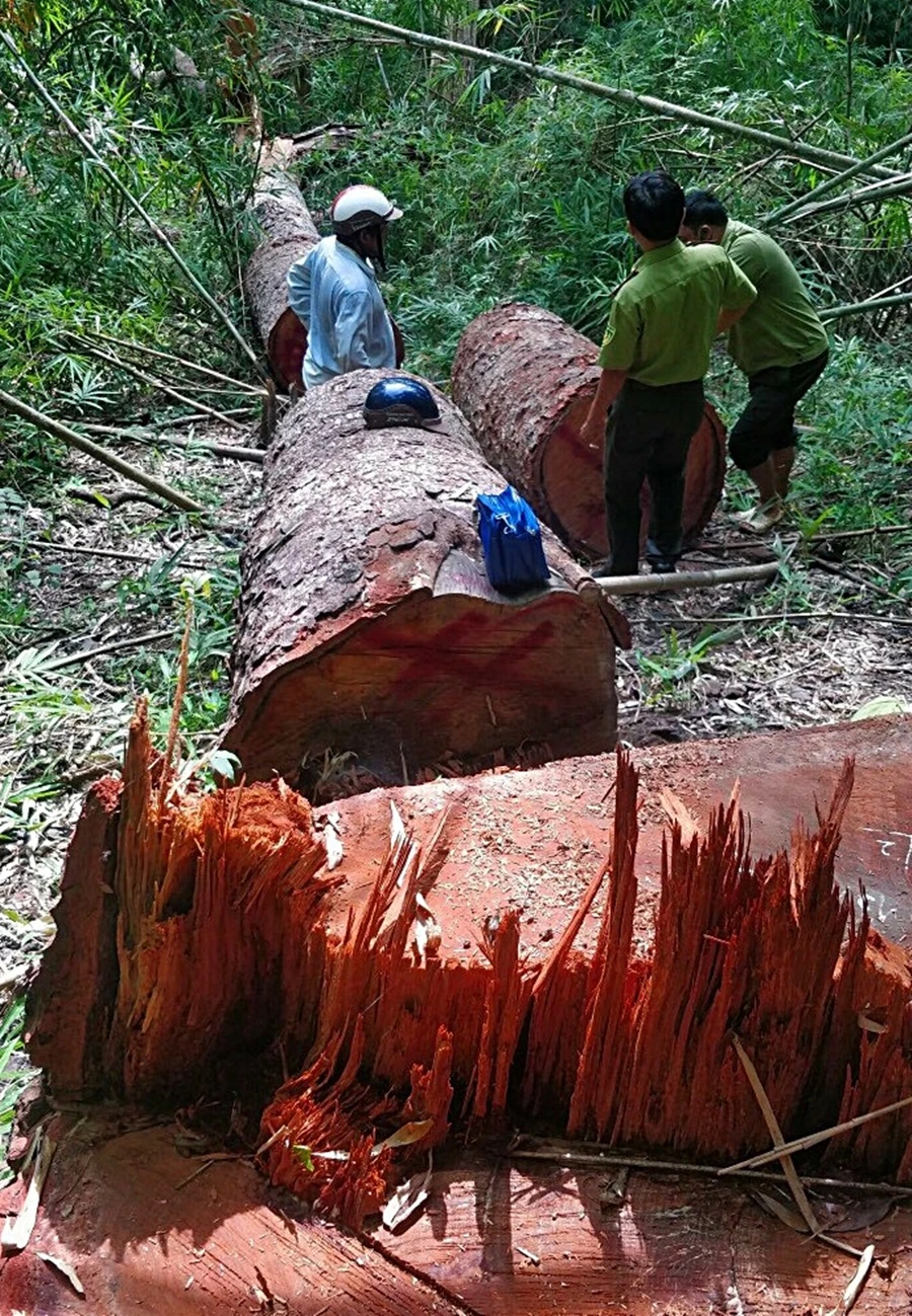 Đây là vụ triệt phá hai cây lim xanh cổ thụ nằm trong rừng sâu. Căn cứ nhựa cây và dấu vết để lại hiện trường thì vụ phá rừng xảy ra khoảng trên dưới vài tuần.