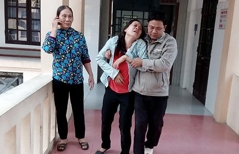 Chị Mẫn (vợ anh Ngọc) ngất xỉu khi hay tin chồng tử vong trong bệnh viện. Ảnh: XB
