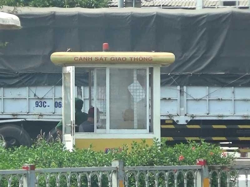 Trưa 15-3, tại chốt CSGT trên ngã tư An Dương Vương và Võ Văn Kiệt có một CSGT và một người mặc trang phục thanh niên xung phong. Họ “không thấy” hàng chục xe tải nặng chạy qua trước mặt.