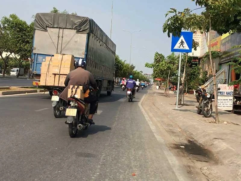 16 giờ, xe tải 68H-700... chạy băng băng trên đại lộ Võ Văn Kiệt theo hướng về giao lộ An Dương Vương. Mặc dù đây là giờ cấm nhưng phương tiện trên 10 tấn này không gặp bất cứ sự cản trở nào từ lực lượng chức năng.