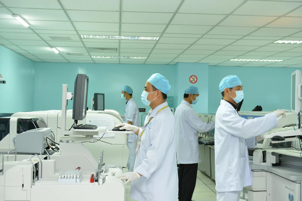 Thao tác trên hệ thống máy xét nghiệm tại BV ĐH Y dược TP.HCM. Ảnh: NP