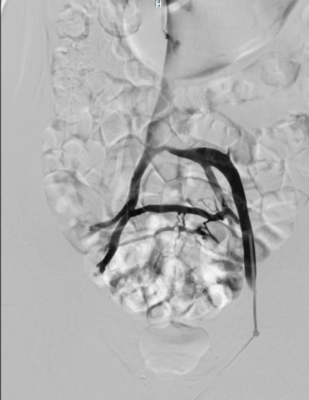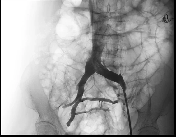 Các bác sĩ khoa Lồng ngực mạch máu, BV ĐH Y Dược chẩn đoán bệnh nhân bị suy tĩnh mạch giai đoạn cuối do hội chứng chèn ép tĩnh mạch chậu. Bà H. cũng được điều trị bằng nong bóng và đặt stent tải thông tĩnh mạch chậu thành công.