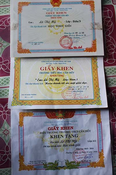 Theo chân chị Lệ, chúng tôi đến căn nhà trọ tuềnh toàng, không vật dụng gì đáng giá. Em Tiên mới đi học về, mồ hôi nhễ nhại, chưa kịp thay bộ đồng phục đã vào bếp chuẩn bị bữa trưa. Tiên chia sẻ: “Con học đến lớp 3 thì hay nghe bạn kêu tên Mỹ mà không phải tên Tiên nên về nhà hỏi mẹ mới biết là con đi học bằng giấy khai sinh của em họ. Một vài bạn ở gần nhà biết chuyện nên con cũng có nói thật nhưng không dám nói với thầy cô. Con cố gắng để học tốt mỗi ngày nhưng luôn lo sợ rằng sẽ khó lên được lớp 10 vì mượn giấy tờ người khác. Con buồn lắm vì không lấy được tên con để đi học, con chỉ ước con được đi học bằng chính tên của con”.