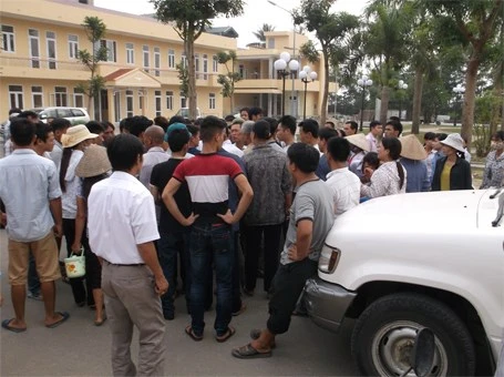 Đông đảo người dân và người nhà của cháu Nhung tập trung trước BV đa khoa Quốc Oai yêu cầu làm rõ nguyên nhân cái chết của cháu. Hình: Dân trí
