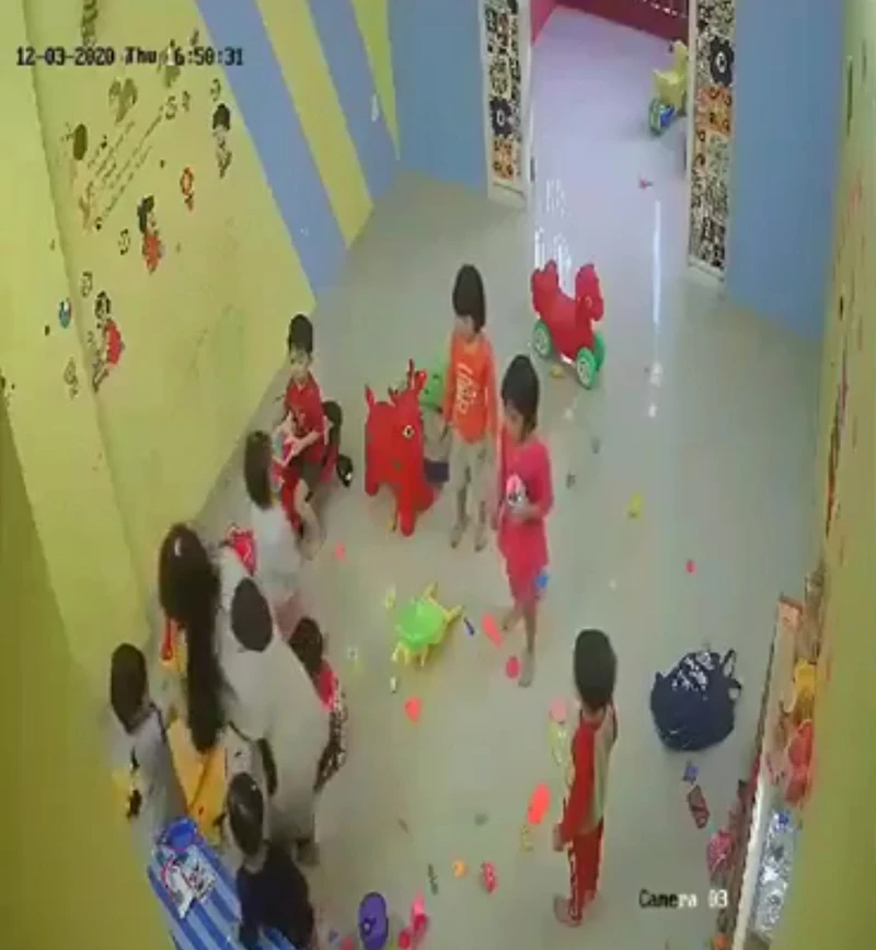Trước đó, từ tối 4-12, một số tài khoản trên mạng xã hội Facebook chia sẻ một đoạn clip dài gần 2 phút ghi lại cảnh một phụ nữ dùng tay đánh một số cháu nhỏ trong một cơ sở giữ trẻ. Sau khi đánh, người phụ nữ dùng tay lôi kéo một số cháu nhỏ ra khỏi phòng.