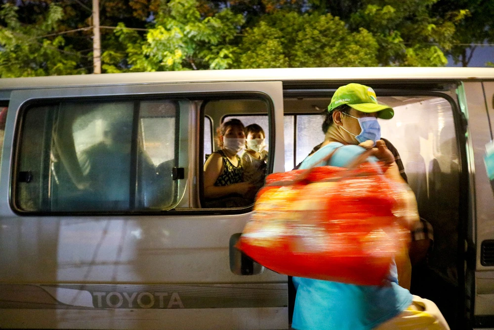 Người dân mang đồ đạc đi cách ly. Ảnh: NGUYỆT NHI