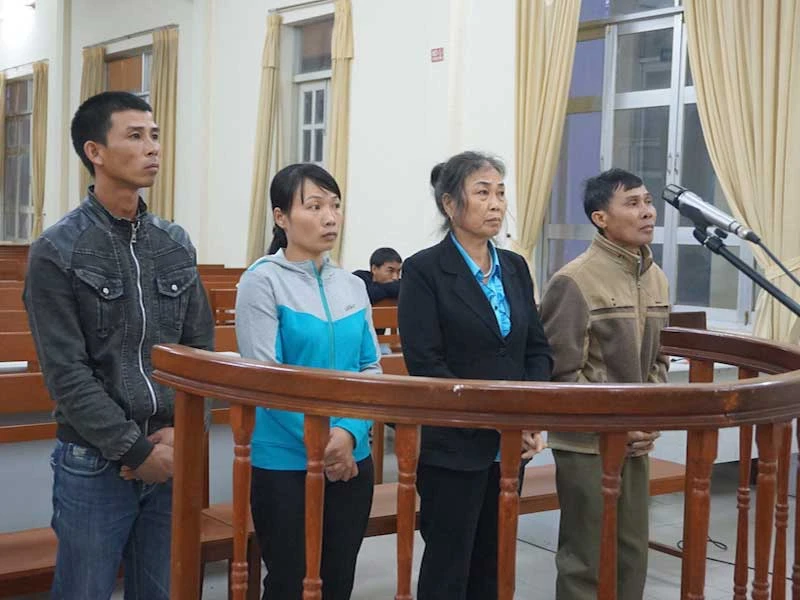 Anh Phương (trái) và ba người trong gia đình khi bị tòa xét xử. Ảnh: NGÂN NGA