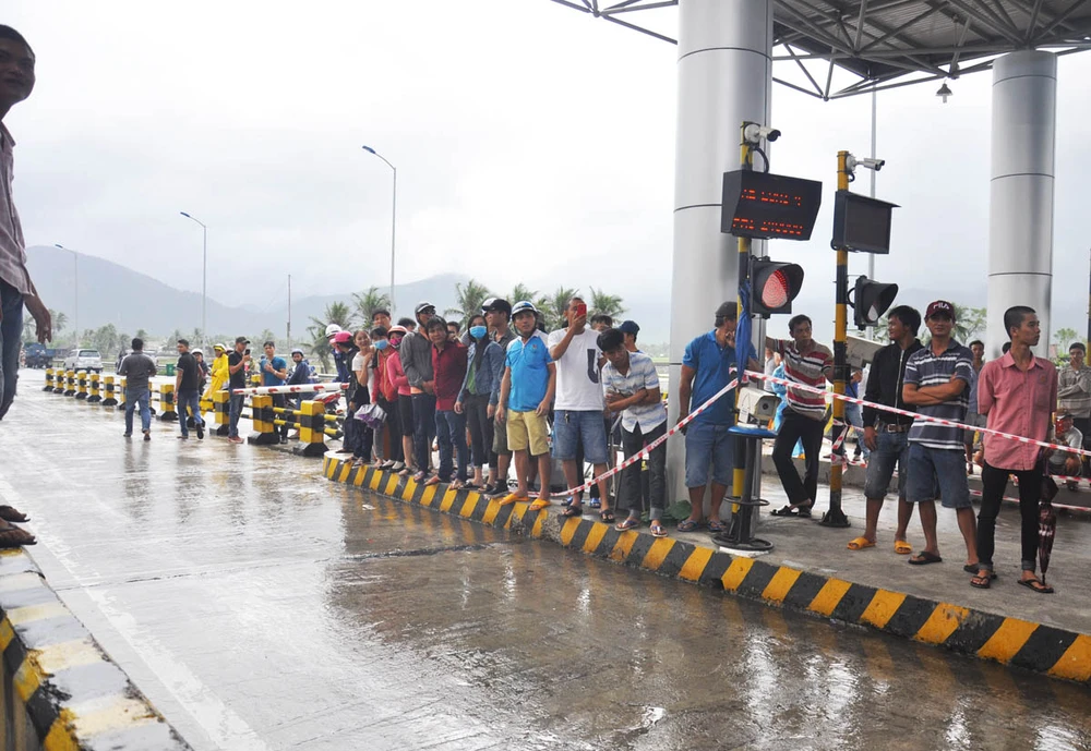 Nhiều người tập trung đến xem khi trạm BOT Ninh An xả trạm.