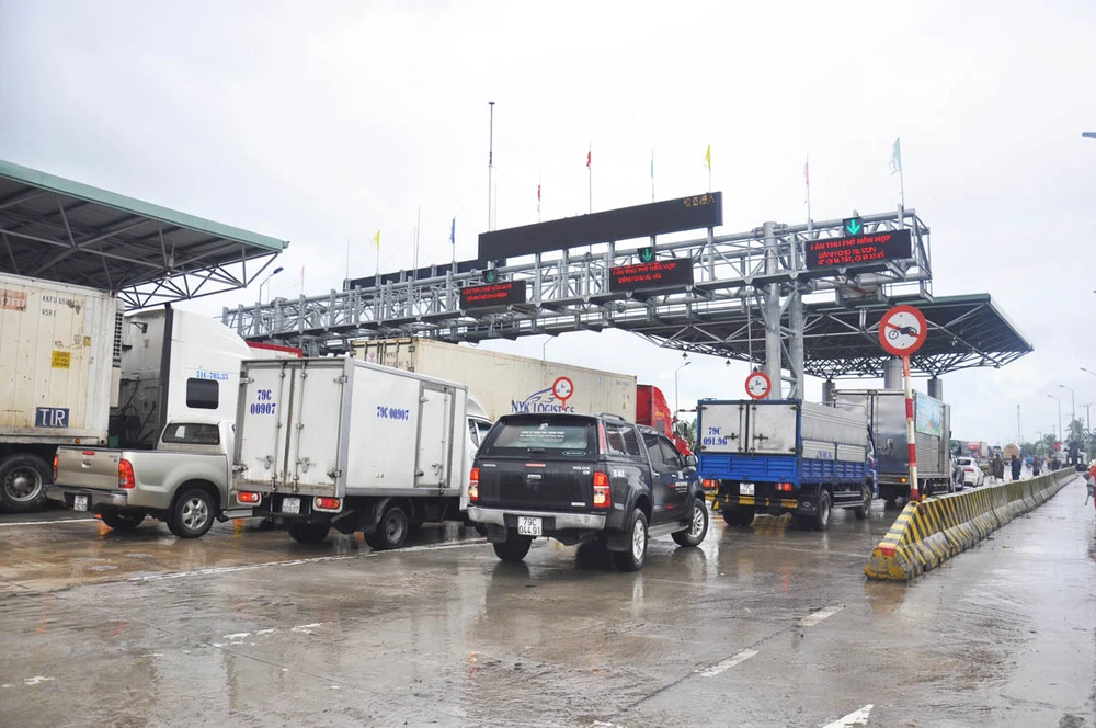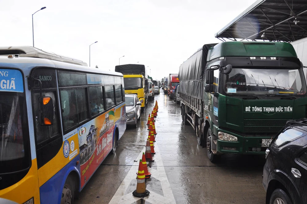 Nhiều ô tô phải nằm chờ hai bên trạm thu phí BOT Ninh An.