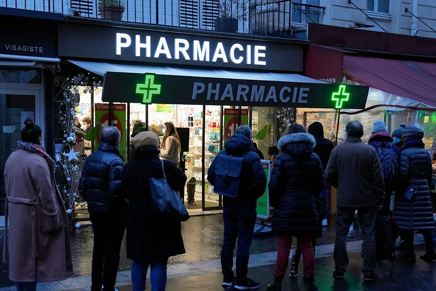 Người dân Pháp xếp hàng xét nghiệm trước một hiệu thuốc ở thủ đô Paris