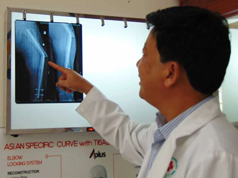 “Ba năm trước, bà H. bị gãy chân phải do tai nạn giao thông và được cố định bằng đinh thép. Mặc dù BS dặn sau một năm phải tái khám để lấy đinh ra nhưng bệnh nhân không quan tâm. Khi chân có biểu hiện đau nhức, đi cà nhắc, bà H. mới tới bệnh viện. Sau khi khám, BS kết luận bà H. bị viêm xương khá nặng mà nguyên nhân do đinh thép. “BS buộc phải lấy đinh thép khỏi người bà H. và cố định bên ngoài. Nếu để lâu, xương có khả năng bị hoại tử và buộc phải cắt bỏ” - TS-BS Phú cho biết thêm.