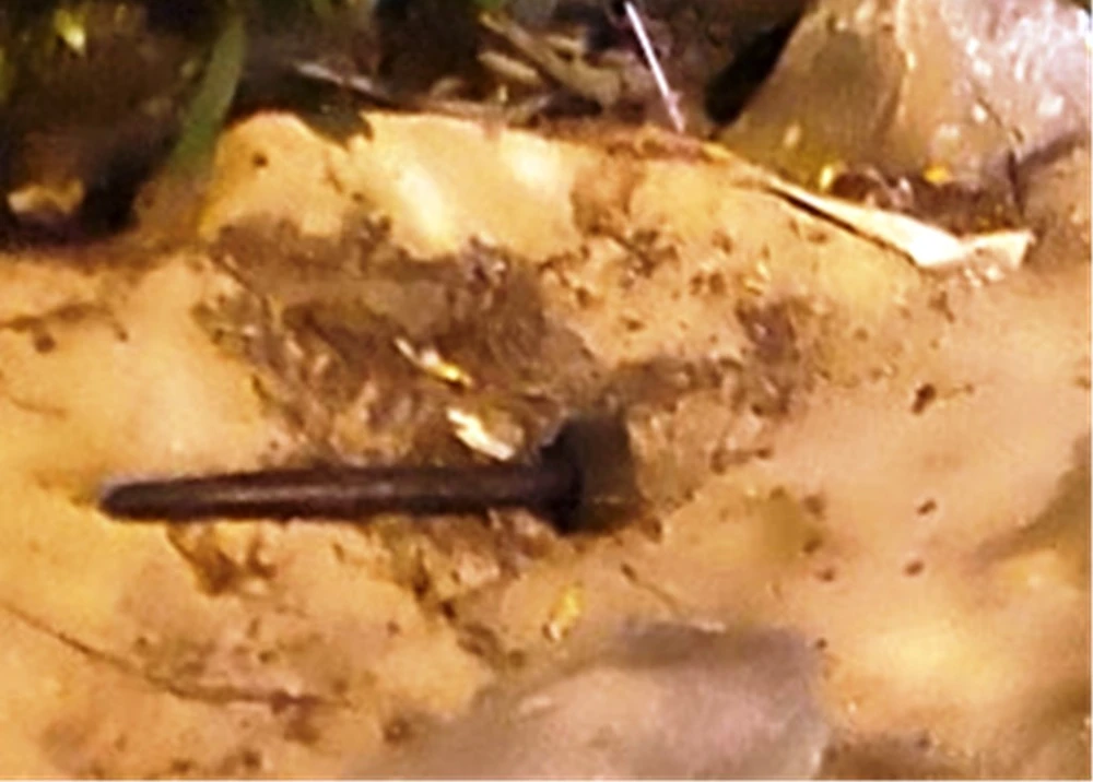 Cây búa tang vật được nghi phạm vứt trước cửa trước khi đi tự thú. Ảnh: C.A