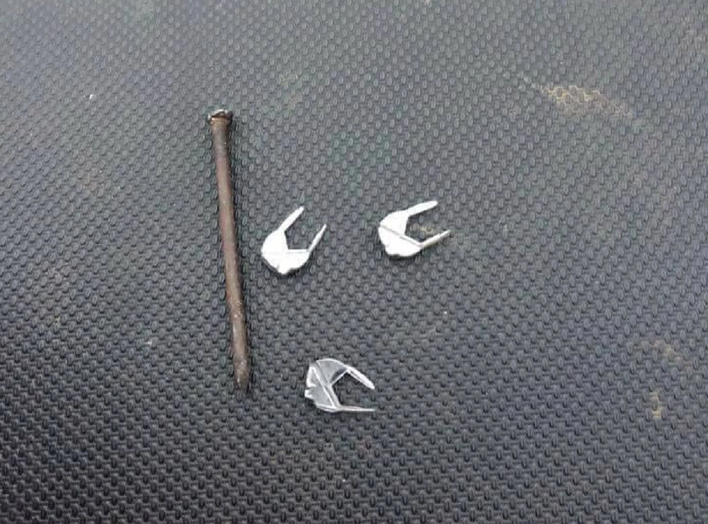 Những chiếc đinh găm vào bánh xe. Ảnh: FB