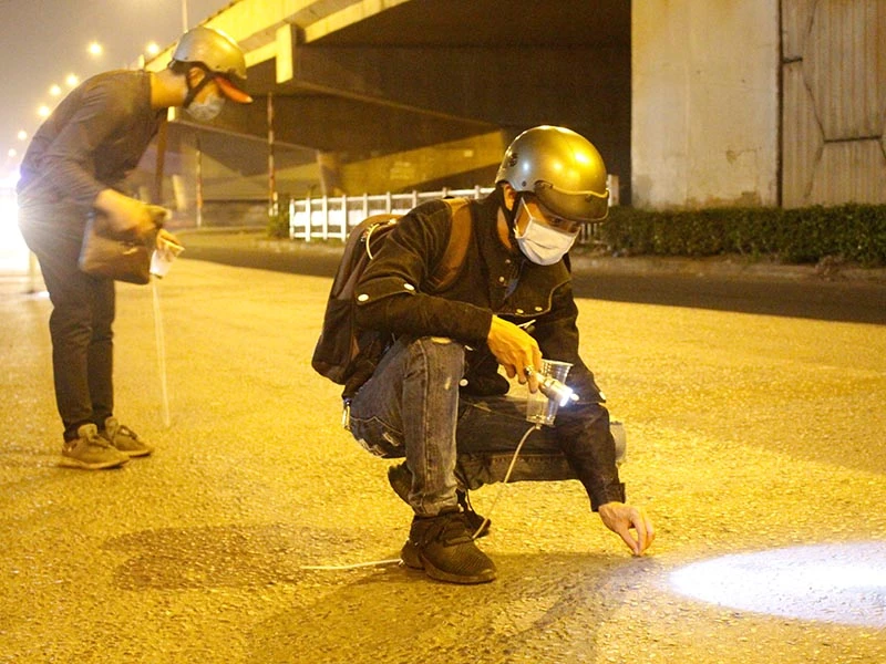Liên tục trong thời gian dài, các thành viên của đội SOS Dĩ An và SBC Thủ Đức có mặt tại tuyến đường “đinh tặc” hoành hành từ khoảng 22 giờ đến 1 giờ sáng để nhặt đinh, hỗ trợ vá xe cho người dân.