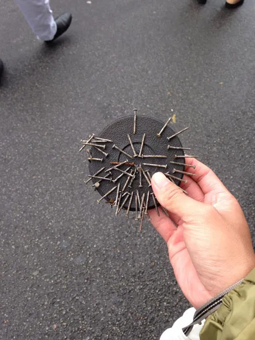 Chị Bùi Thị Hồng Lợi, sinh sống ở gần đó, cho biết: “Đinh được rải từ lâu và nhiều người không để ý, còn trong tuần này đã không dưới hai lần nhìn thấy họ rải đinh trên đường. Trong một tuần vừa qua, chúng tôi và người dân ở đây cùng ra nhặt đinh, vừa tránh rủi ro cho mình và những người đi đường”.