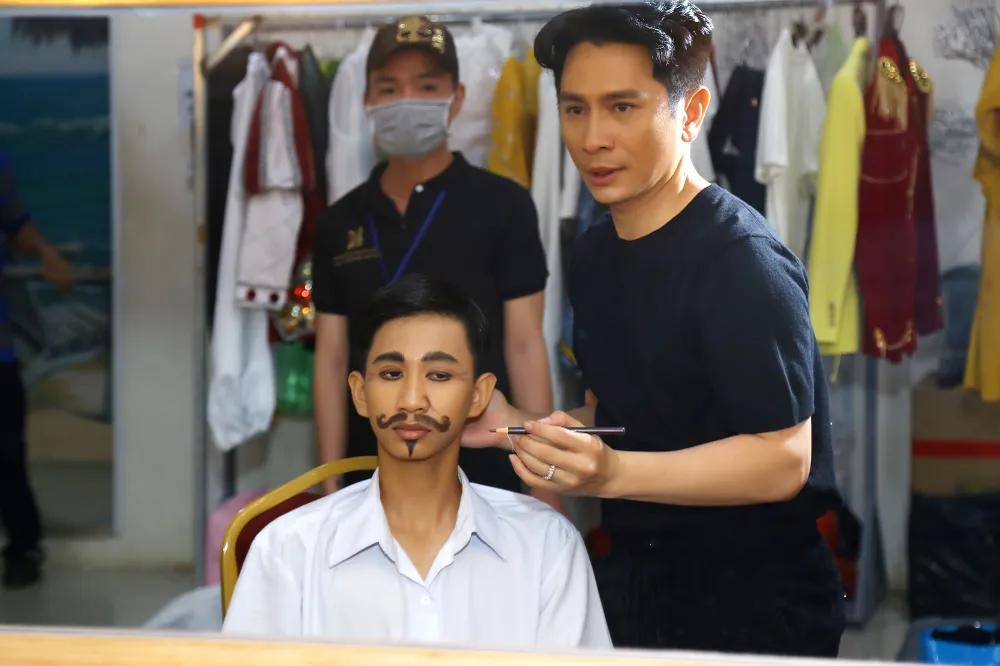 Đình Toàn trực tiếp trang điểm cho Tiến Dũng. Ảnh: JET