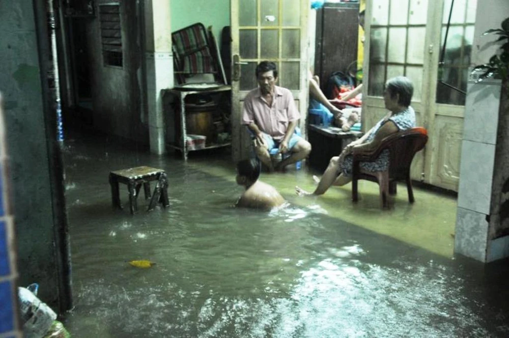 Nước lớn từ sông Sài Gòn tràn vào nhà dân khiến sinh hoạt bị đảo lộn.