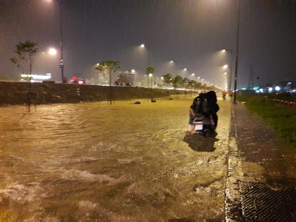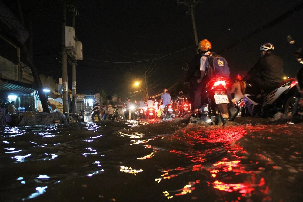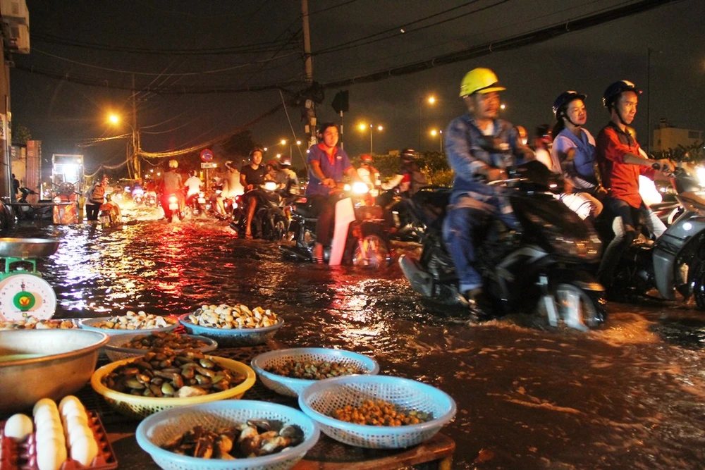 Đường Võ Văn Kiệt ngập làn xe máy quá nửa bánh. Nhiều xe máy bị chết máy phải dắt bộ la liệt. Quốc lộ 1A đoạn qua huyện Bình Chánh bị tê liệt. Dòng phương tiện nối đuôi nhau đến 21h30' vẫn chưa thể nhúc nhích. Đường Lý Thường Kiệt, Châu Văn Liêm cũng bị ngập nặng.
