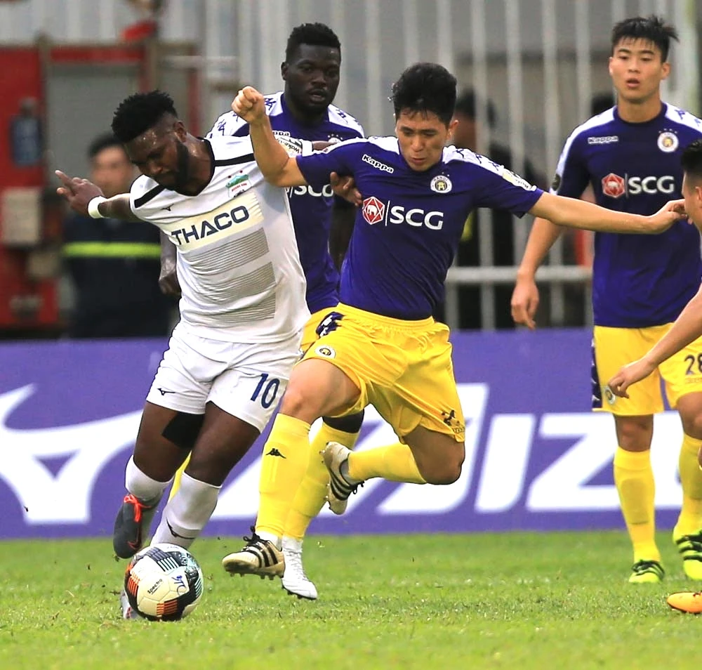 Đình Trọng dính chấn thương trong trận Hà Nội FC làm khách trên sân Pleiku của HA Gia Lai. Ảnh: VPF