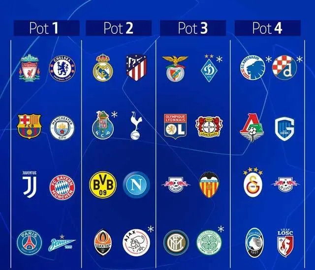 Kết quả trên vừa được UEFA xác định và phân chia 32 CLB thành bốn nhóm hạt giống. Theo đó nhóm 1 bao gồm sáu CLB đoạt chức vô địch tại sáu giải đấu hàng đầu châu Âu theo hệ số trên bảng xếp hạng UEFA năm 2018 và hai đội vô địch Champions League và Europa League.
