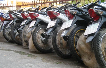 Hàng chục xe “đi bão” bị Công an TP Thanh Hóa sử dụng bùi nhùi bắt giữ. Ảnh: Đ.TRUNG