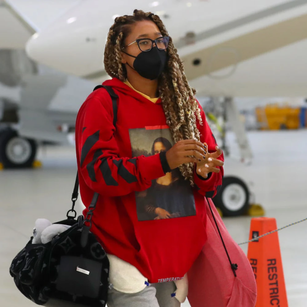 Đương kim vô địch nữ Naomi Osaka lỉnh kỉnh hành trang tại sân bay Melbourne. ẢNH: AO