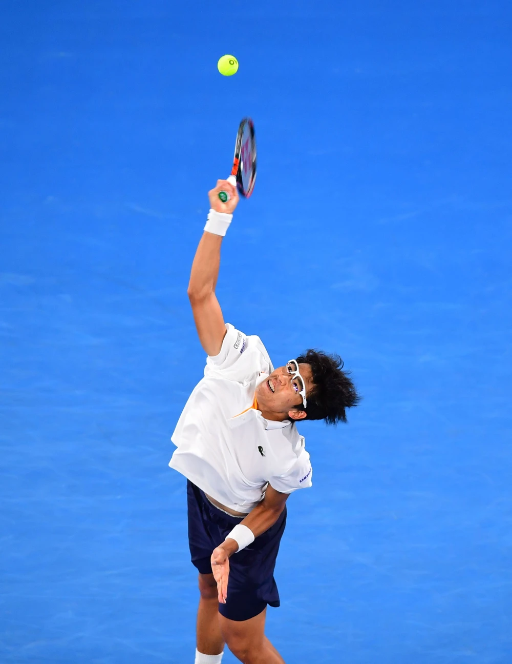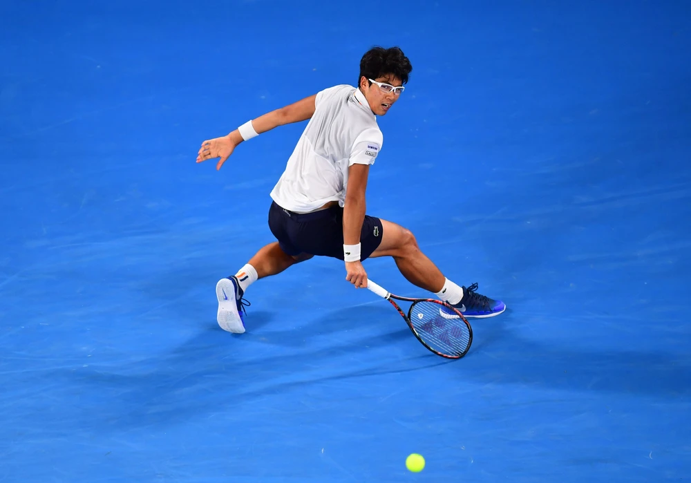 Hyeon Chung sao chép cách đánh tương tự thần tượng Djokovic. ẢNH: AO