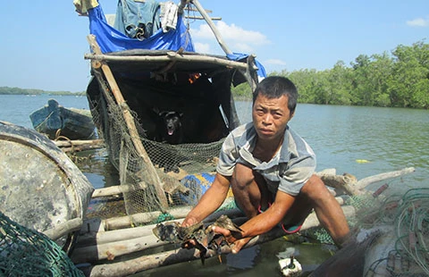 Còn anh Dương Văn Sáng cầm hai con hàu chết, nước mắt lưng tròng: “Học hành ít, cuộc sống vất vả nên vợ chồng tôi phải xuống sông đóng đáy nuôi thủy sản. Mình khổ nhưng cố lo để tương lai con cái mai sau đỡ vất vả. Đầu tư cả đống tiền để nuôi hào, nó cũng là loại dễ sống, vậy mà từ khi hút cát đến nay hầu như ngày nào hàu cũng chết. Mới có tháng mà chết mất cả 80% hàu trong bè, gia đình tôi có nguy cơ mất luôn vốn, chả còn tiền mà mua con giống mới”. Ngoài ra, anh Sáng cho biết là khi hút cát, sóng đánh mạnh tác động khiến bè hàu nhà anh bị gãy. Nhà anh Sáng phải gia cố tạm lại bè hàu để nuôi nhưng nếu còn hút cát nữa có nguy cơ bè gãy hẳn.