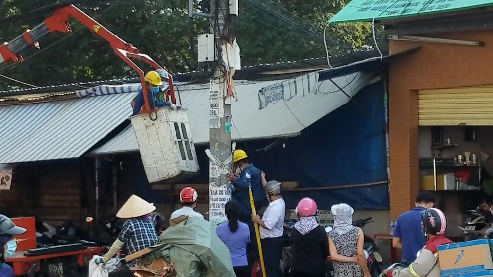 Công an quận Tân Phú sau đó có mặt khám nghiệm hiện trường, điều tra nguyên nhân. Điện quanh khu vực cũng được nhân viên điện lực cắt nguồn để đảm bảo an toàn.