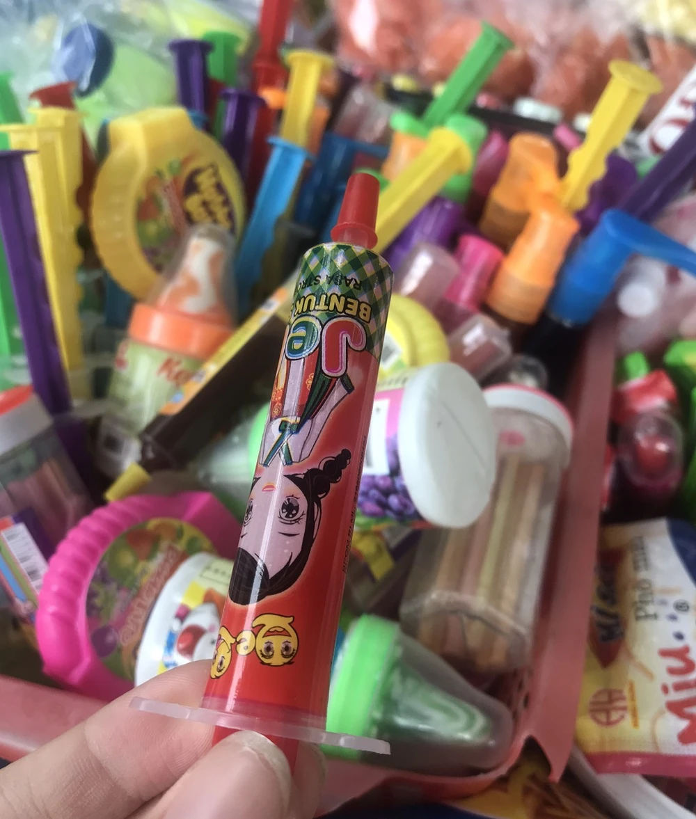 Kẹo dạng ống chích có giá từ 3.000 đến 5.000 đồng. Ảnh: THẢO PHƯƠNG