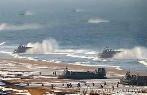 Tàu đệm khí Triều Tiên trong một lần tập trận. Ảnh: Yonhap