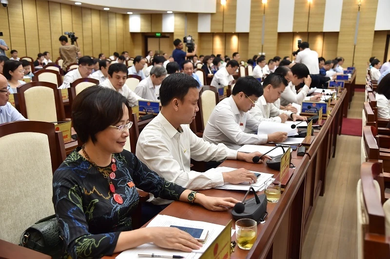 Đại biểu HĐND TP Hà Nội thông qua phương án học phí năm học 2020-2021. Ảnh: TP